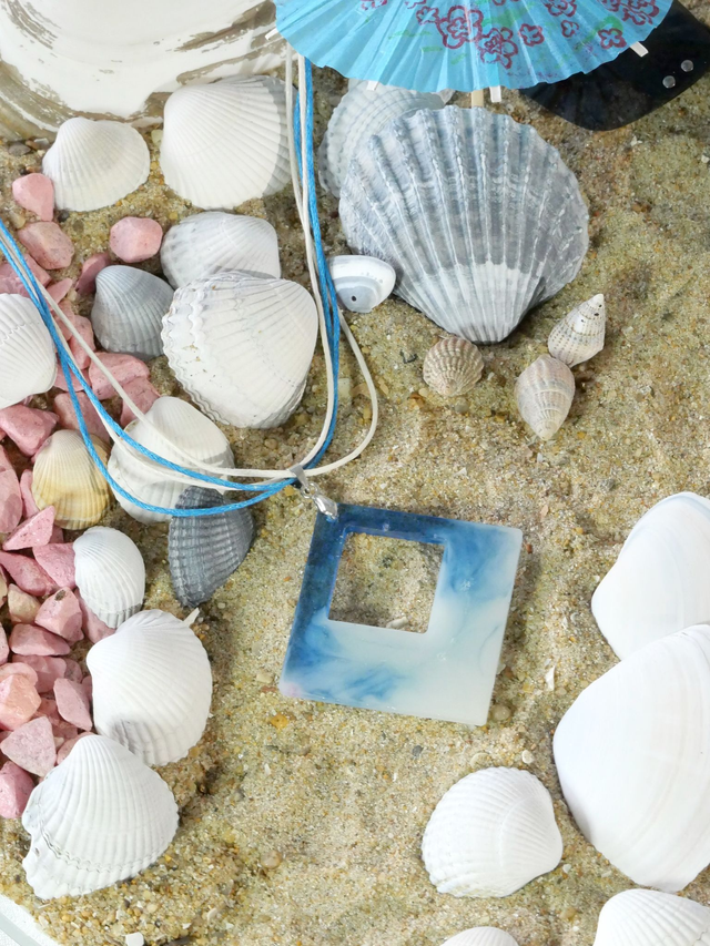 Collier avec forme carré en résine époxy avec inclusion de nuages